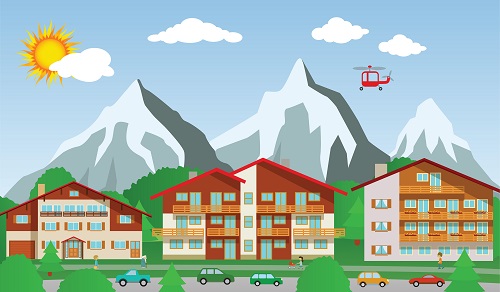 Mountain House Swiss Style Card Vector Landscape View Cartoon
