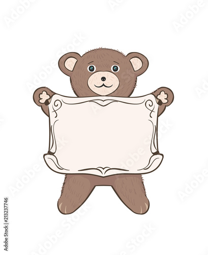 Teddy Bear Cub With Empty Frame For Text Children S Vector