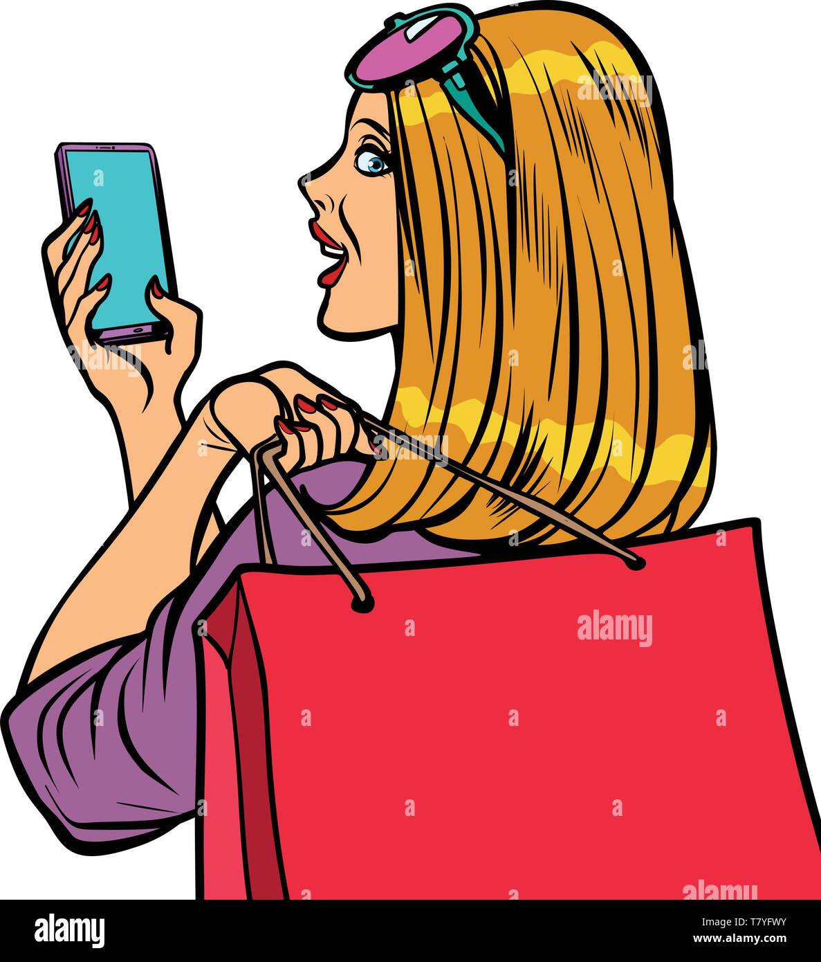 Woman Buyer Online Sale Isolate On White Background Comic Cartoon