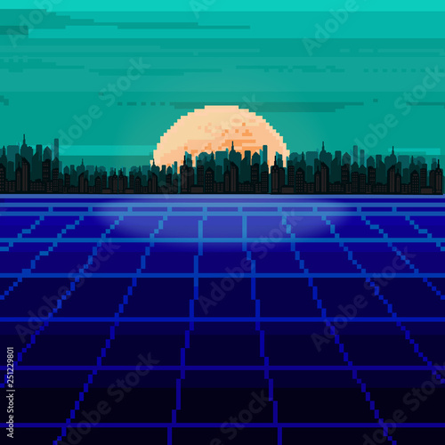 Vector Of Pixel City Pixel Art Background 80s Retro Sci Fi
