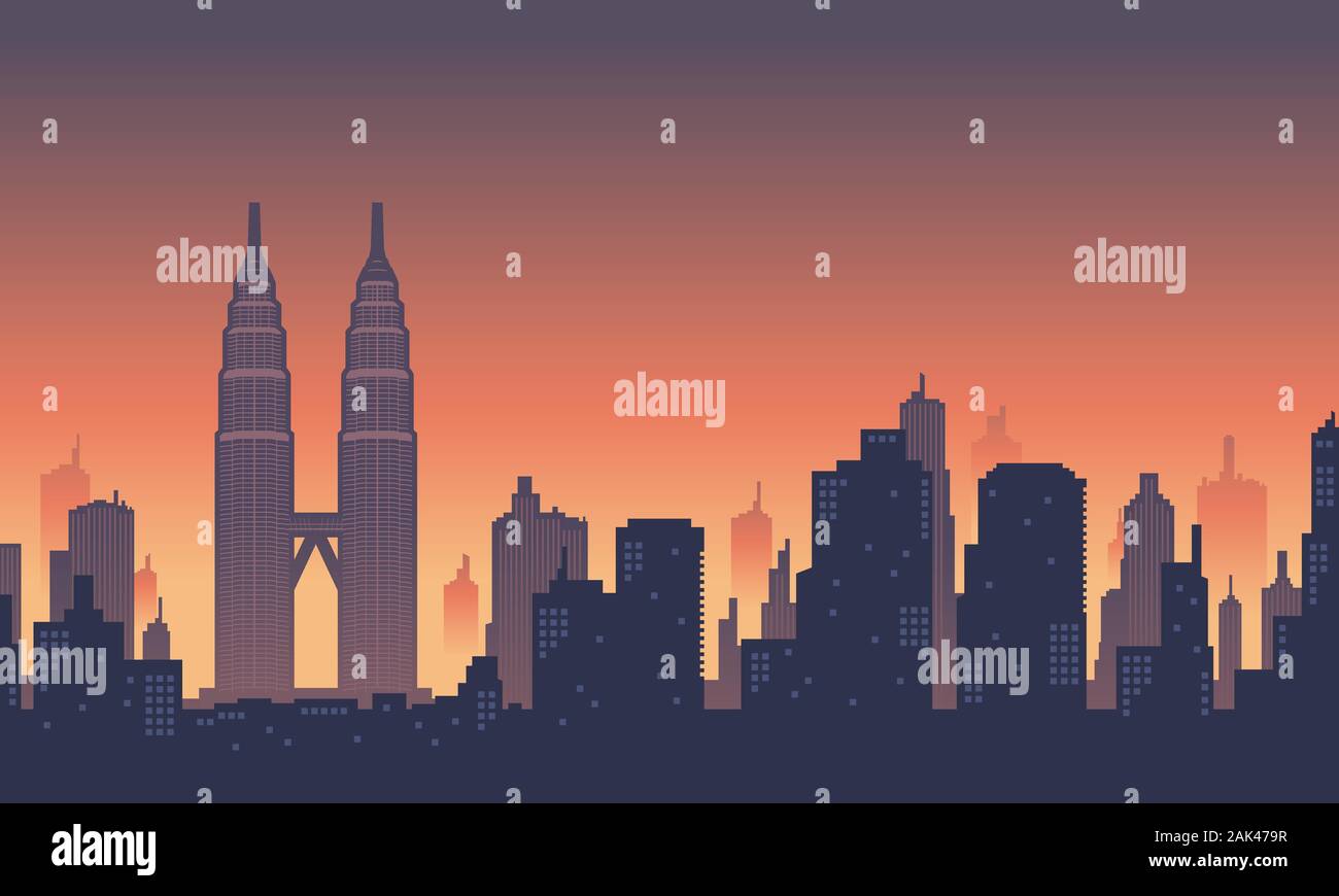 City Silhouette Background Of Twin Tower Malaysia Collection City