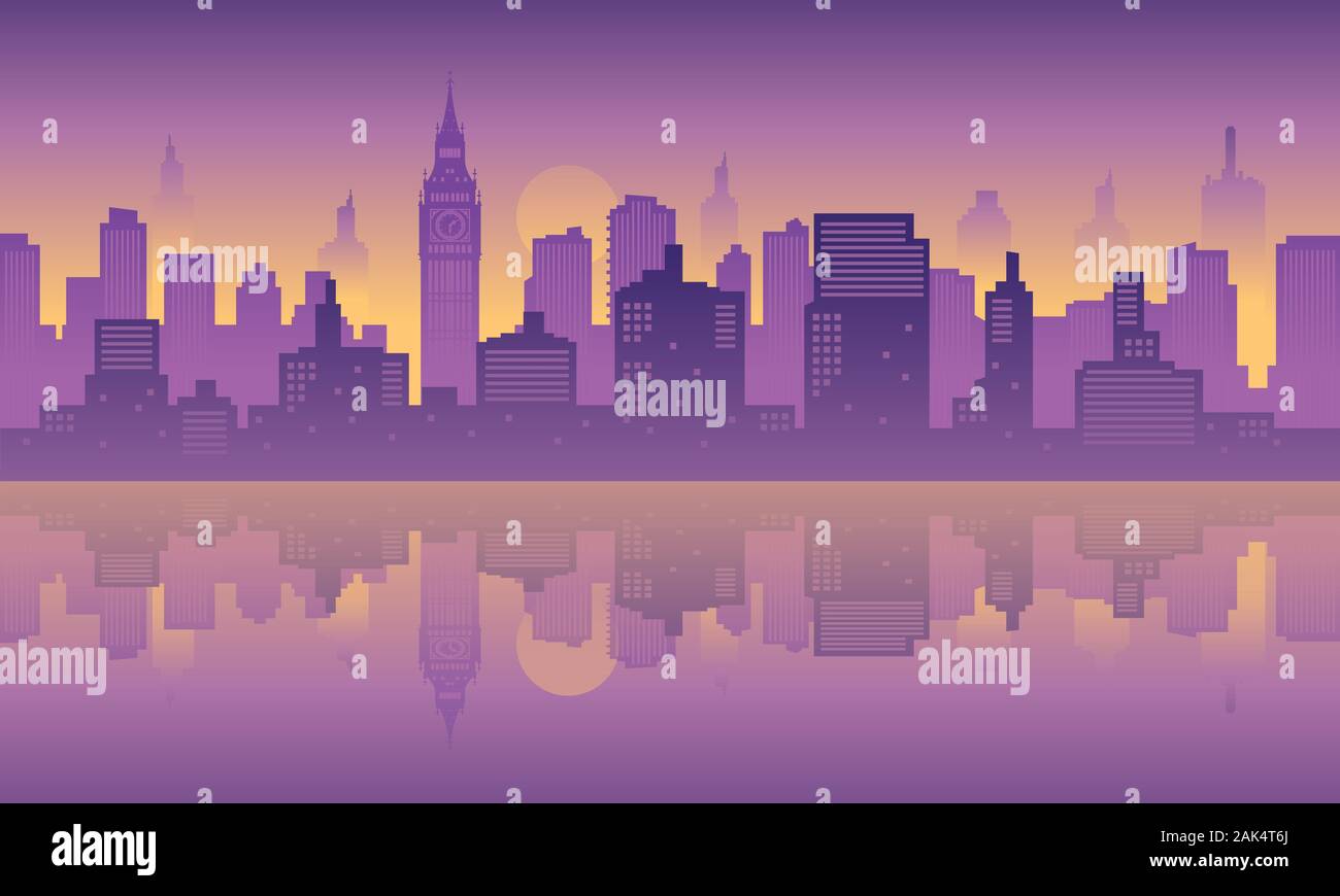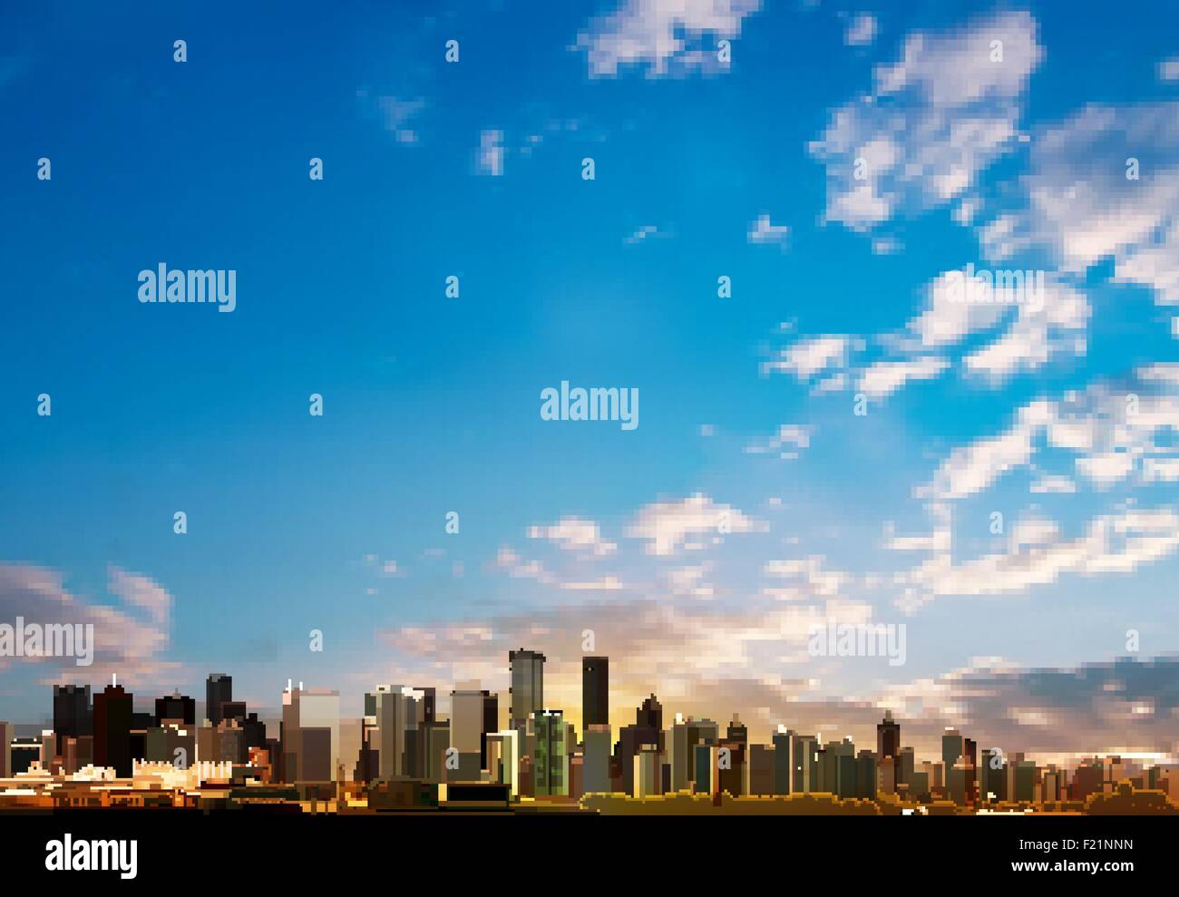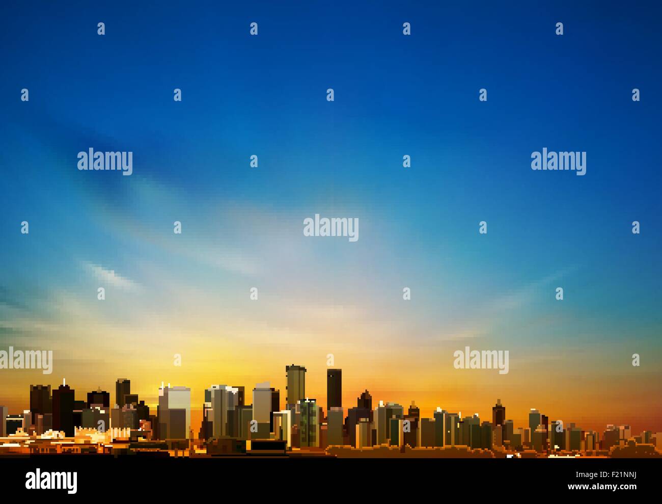 City Skyline At Sunset Vector Background Vector Art Graphics
