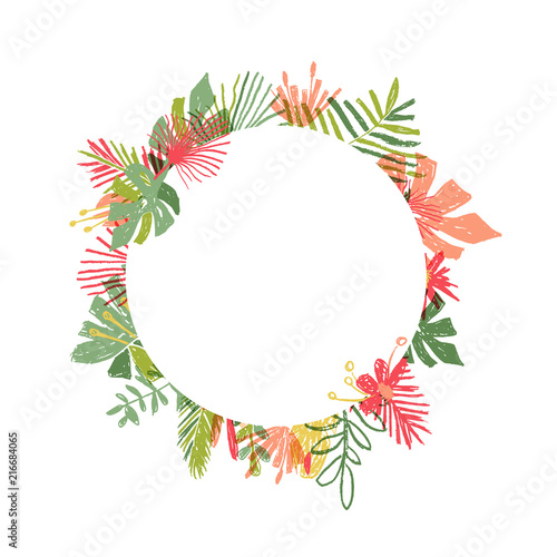 Hand Drawn Tropical Flower Circle Frame Vector Illustration
