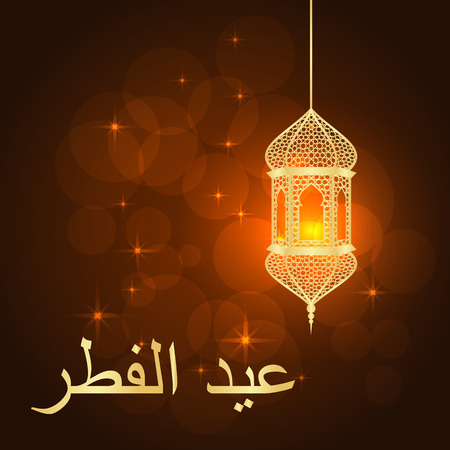 Clip Art Vector Glowing Lamp On Eid Mubarak Background Stock