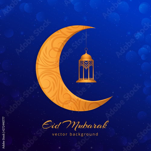 Eid Mubarak Background With Shiny Gold Islamic Lantern Vector