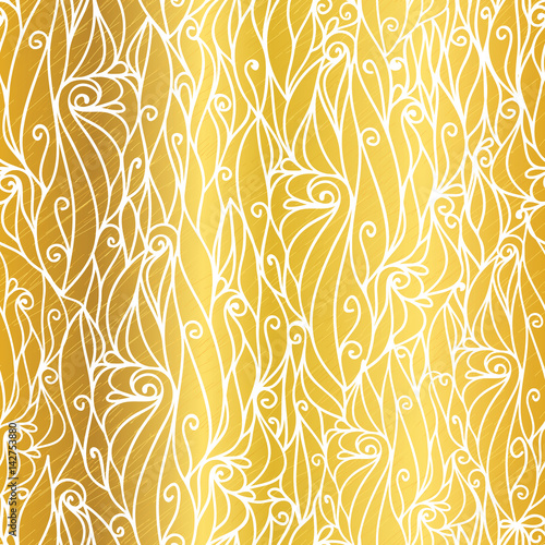 Vector Gold And White Seaweed Texture Seamless Pattern Background