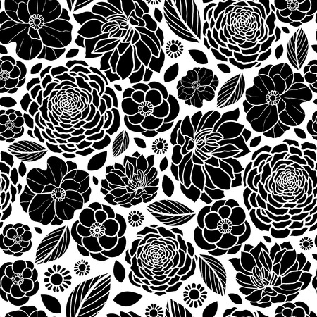 Floral Black And White Seamless Pattern Vector Flowers Background