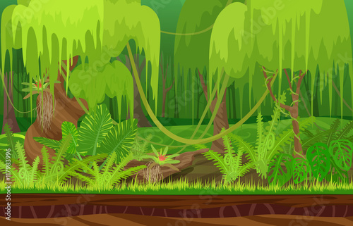 Vector Cartoon Illustration Of Background Rainforest Bright