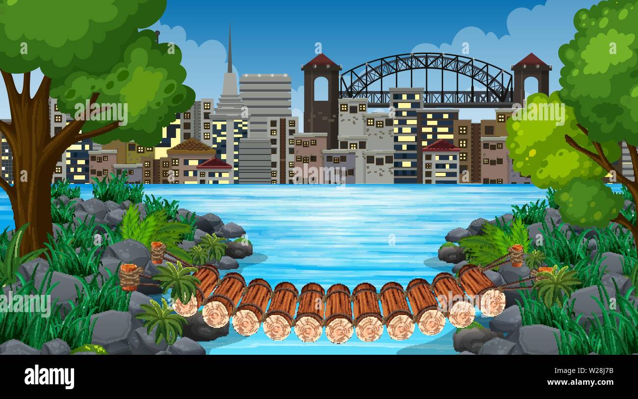 City And Jungle Background Scene Illustration Stock Vector Image