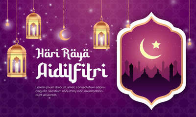Freepik Hari Raya Aidilfitri Banner Template With Lanterns Free