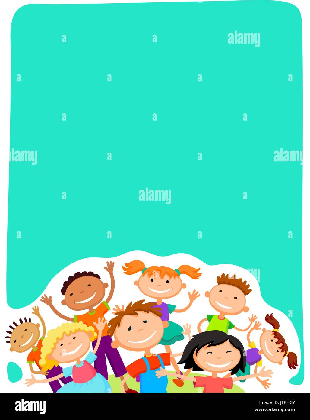 Happy Smiling Group Of Kids Showing Blank Board Vector Image On