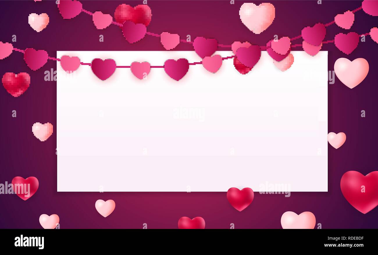 Love Background Valentines Day Frame With 3d Hearts Stock