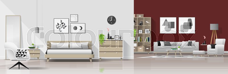 Vector Cartoon Illustration Of A Cozy Modern Bedroom Living Room