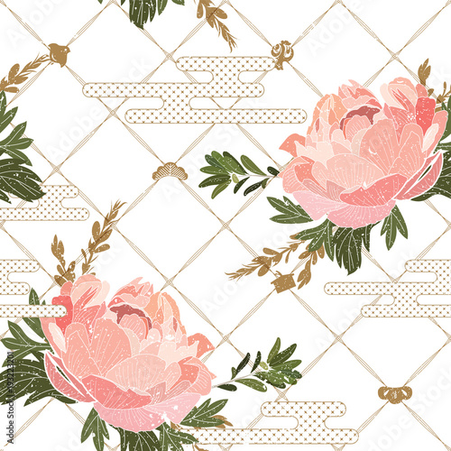 Floral Pattern Seamless With Japanese Background Vector Peony