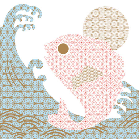 Carp Fish With Japanese Pattern Vector Japanese Background