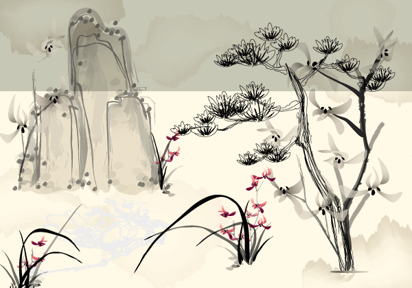 Japanese Background Vector Icons And Elements Of Tree Flower