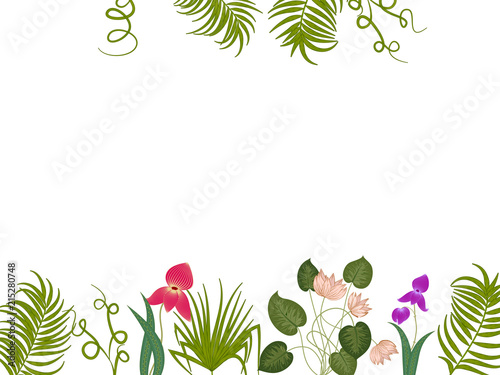 Colorful Jungle Leaf Leaves Flower Border Background Tropical