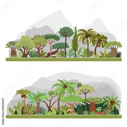 Vector Jungle Trees Collection Tropical Jungle Flat Illustration