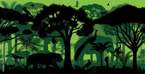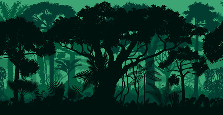 Vector Horizontal Seamless Tropical Rainforest Jungle Forest