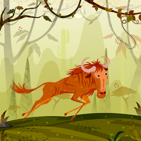 Wild Animal Wildebeest In Jungle Forest Background Royalty Free