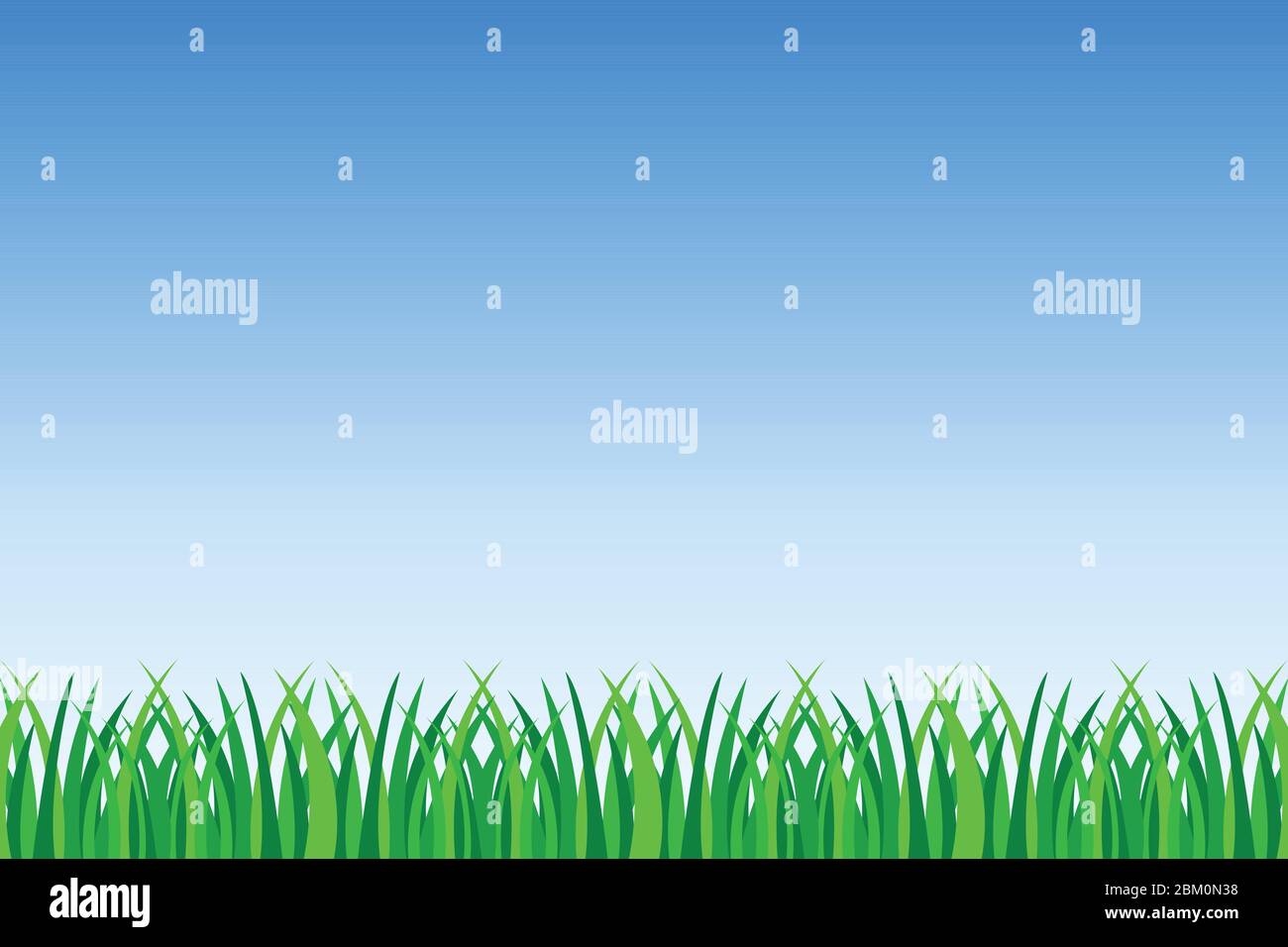Background Of Green Grass And Blue Sky Vector Illustration Nature