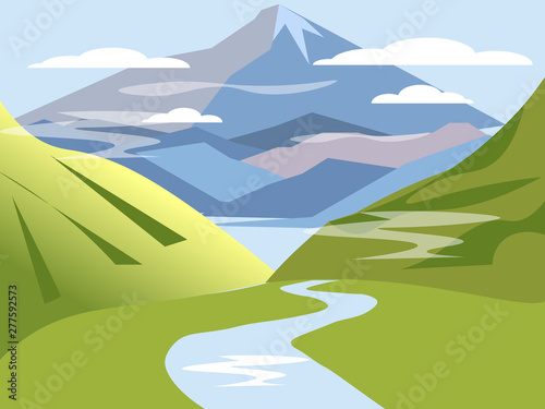 Amazing Mountains Green Landscape Vector Illustration National
