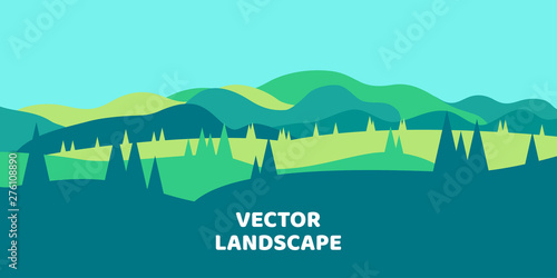 Landscape Background Of Mountains With Forest Minimalist Vector