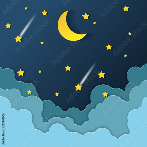 Night Sky With Stars And Moon Paper Art Style Vector Of A