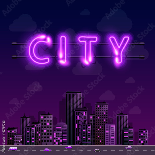 Neon Night City Background Cover Retro Vector Illustration Buy