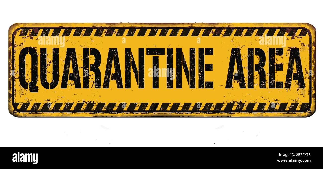 Quarantine Area Vintage Rusty Metal Sign On A White Background
