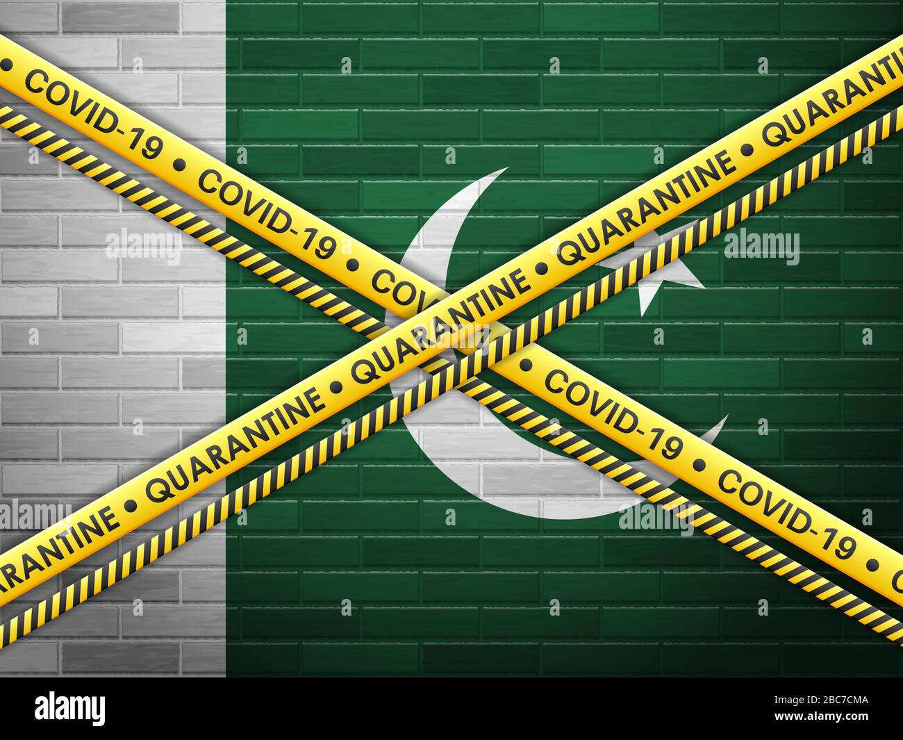 Pakistan In Quarantine Bricks Wall Background Vector Illustration