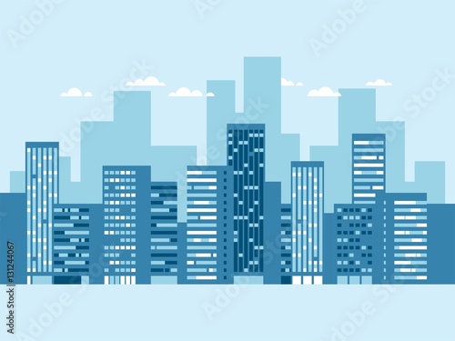 Urban Landscape With Buildings And Clouds Blue City Silhouette