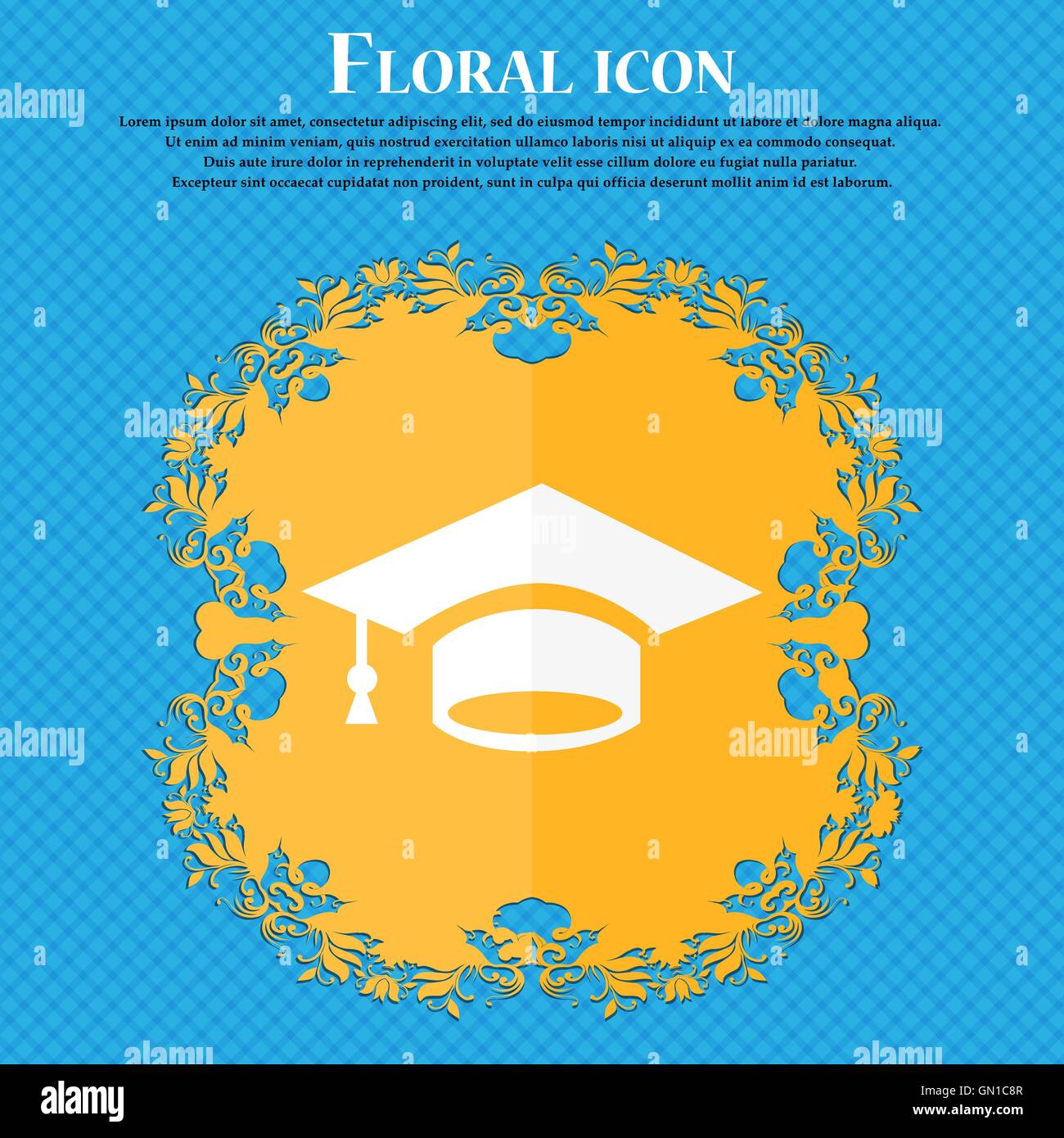 Graduation Icon Floral Flat Design On A Blue Abstract Background