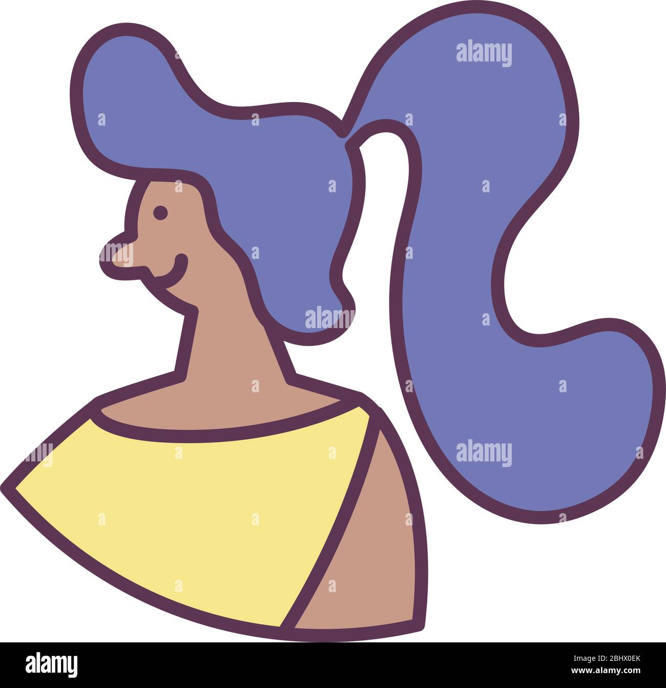 Vector Artistic Hand Drawn Stylish Young Lady Portrait Isolated On
