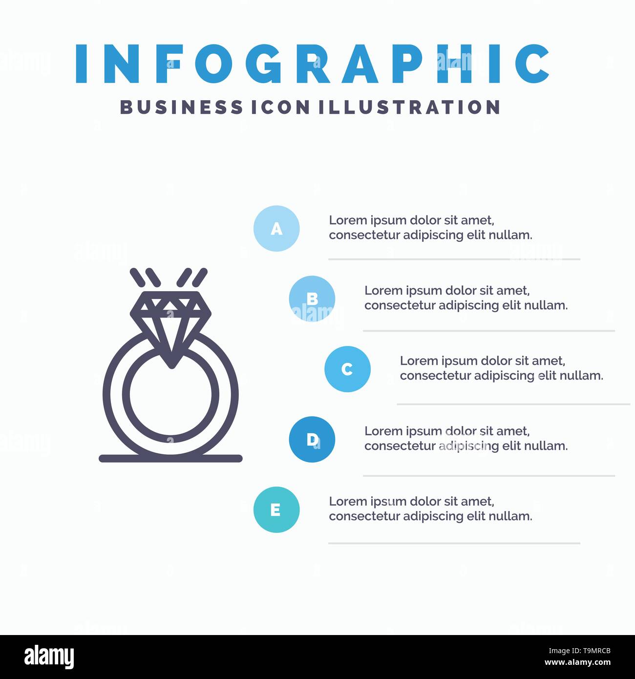 Ring Diamond Proposal Marriage Love Line Icon With 5 Steps