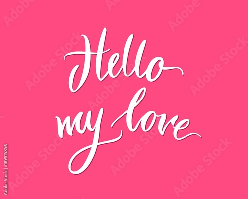 Lettering Hello My Love Pink Background Welcome Inscription On