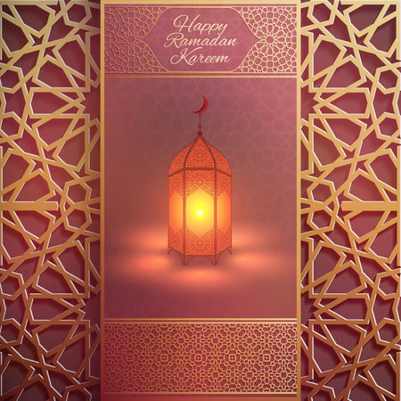 Eid Mubarak Greeting Card Islamic Vector Acrylic Arabic Lantern