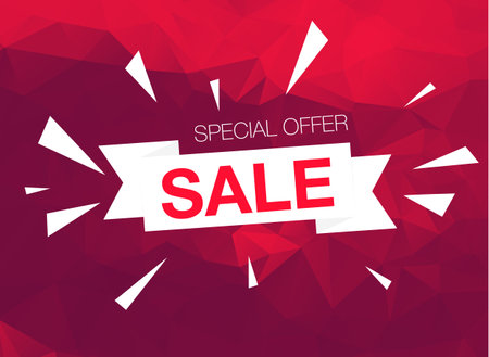 Sale Banner Red Discount Poster Bank Origami Background Vector