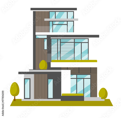 Big Modern House With Many Windows Vector Cartoon Illustration