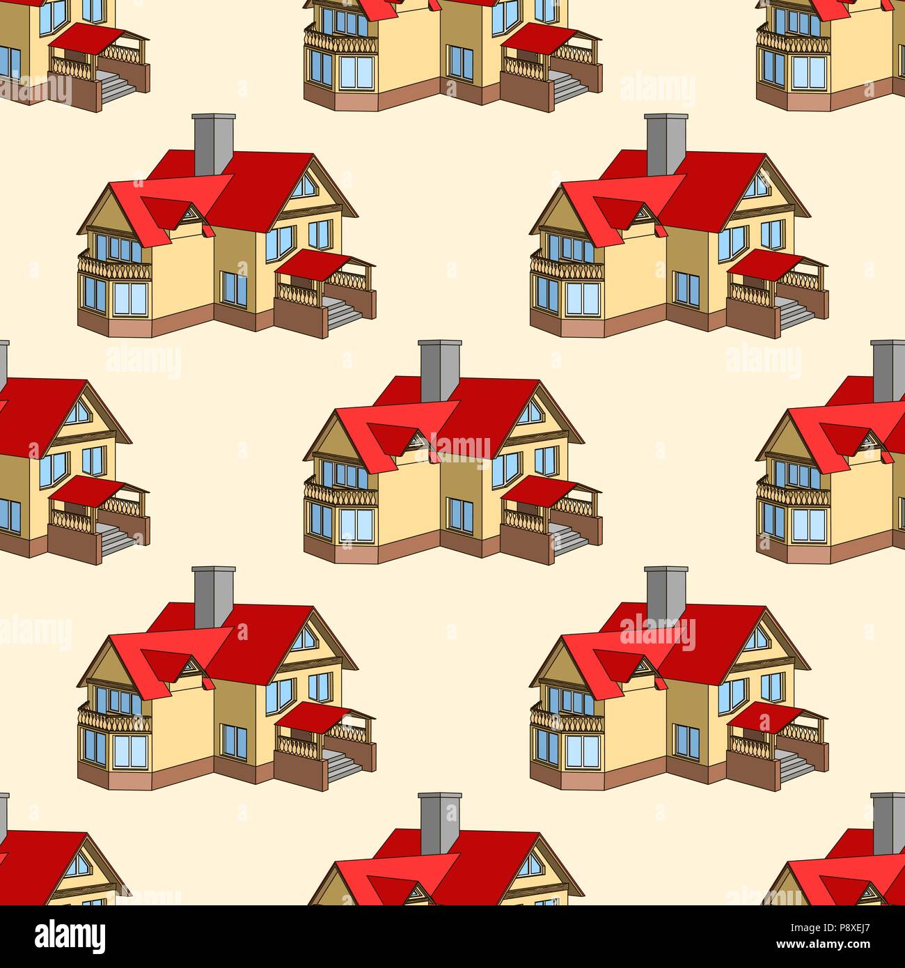 Cartoon Houses Exterior Seamless Pattern Background Vector Stock