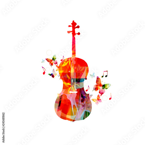 Colorful Violoncello With Music Notes Isolated Vector Illustration