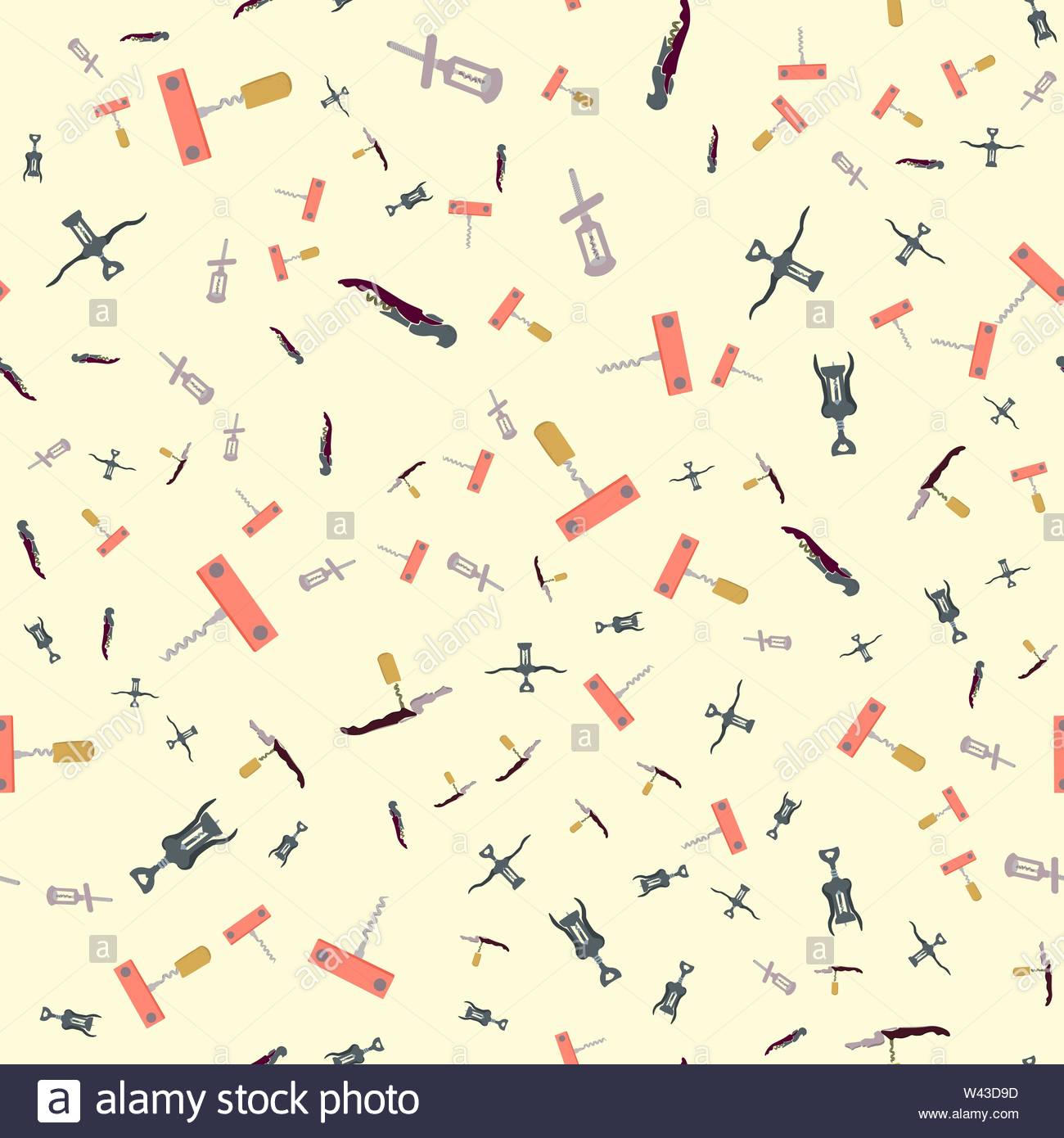 Hand Drawn Coloured Corkscrews On Cream Colour Background Seamle