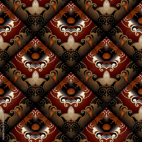 Dark Red Brown Floral Wallpaper Seamless Vector Design Background