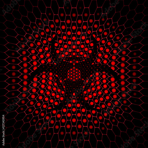 Abstract Vector Dark Red Hexagon Background With Glow Stock