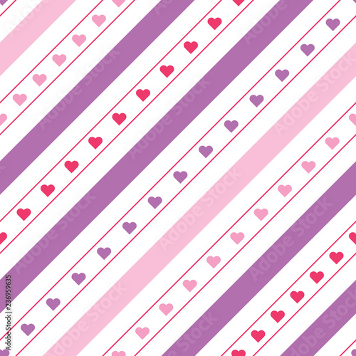 Vector Diagonal Lines Seamless Pattern With Hearts In Purple Pink