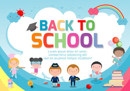 Vector Education Banner With Copy Space Rainbow Borders And A Row