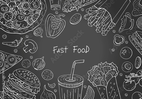 Fast Food Doodles Elements Frame Background Vector Illustration C Olga Kostenko Balabolka 5959692 Stockfresh