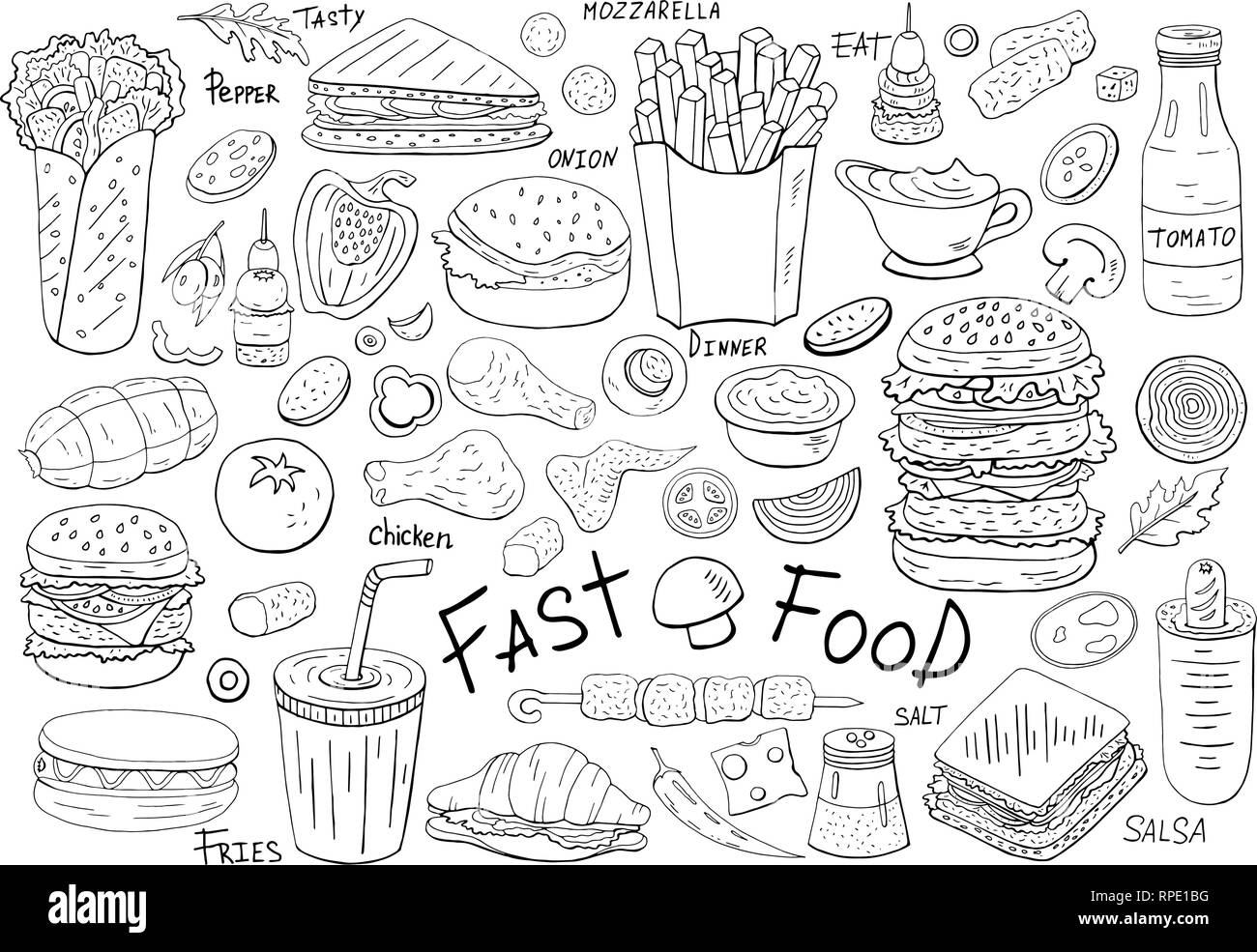 Vector Fast Food Doodle Set For Menu And Food Background Stock Illustration Download Image Now Istock