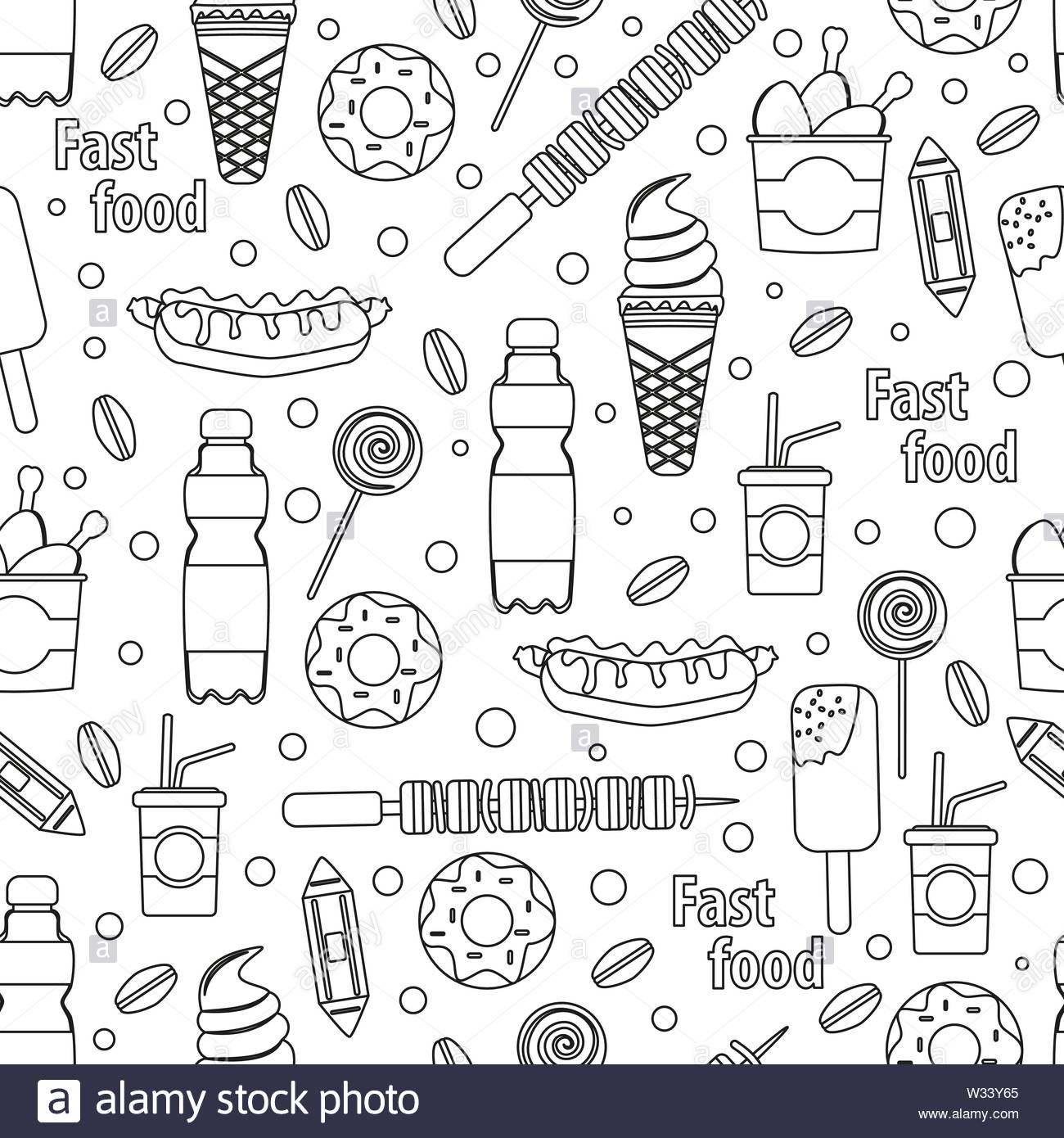 Vector Fast Food Seamless Pattern Outline Restaurant Set Like Coffee Pizza Hamburger And Ice Cream Illustration On White Background Stock Vector Image Art Alamy