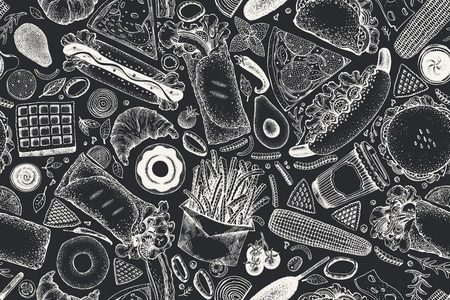 Fast Food Seamless Pattern Hand Drawn Food Background Background Royalty Free Cliparts Vectors And Stock Illustration Image 55028613